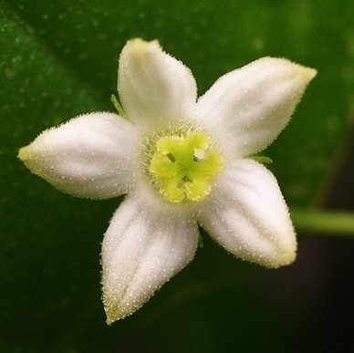 花びらは通常5枚で、小さく白く、先端が浅く裂けて広がっています。緑色の5枚のガクが、花びらの基部を支えています。