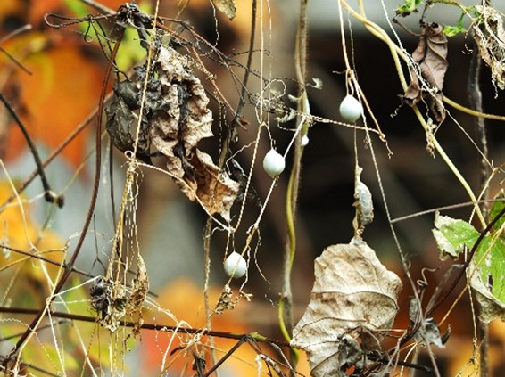 私がスズメウリを初めて見つけたのは、花ではなく白い実でした。その実には種子が入っていたので庭にまき、花を咲かせてみようとしましたが、うまく発芽させることができませんでした。